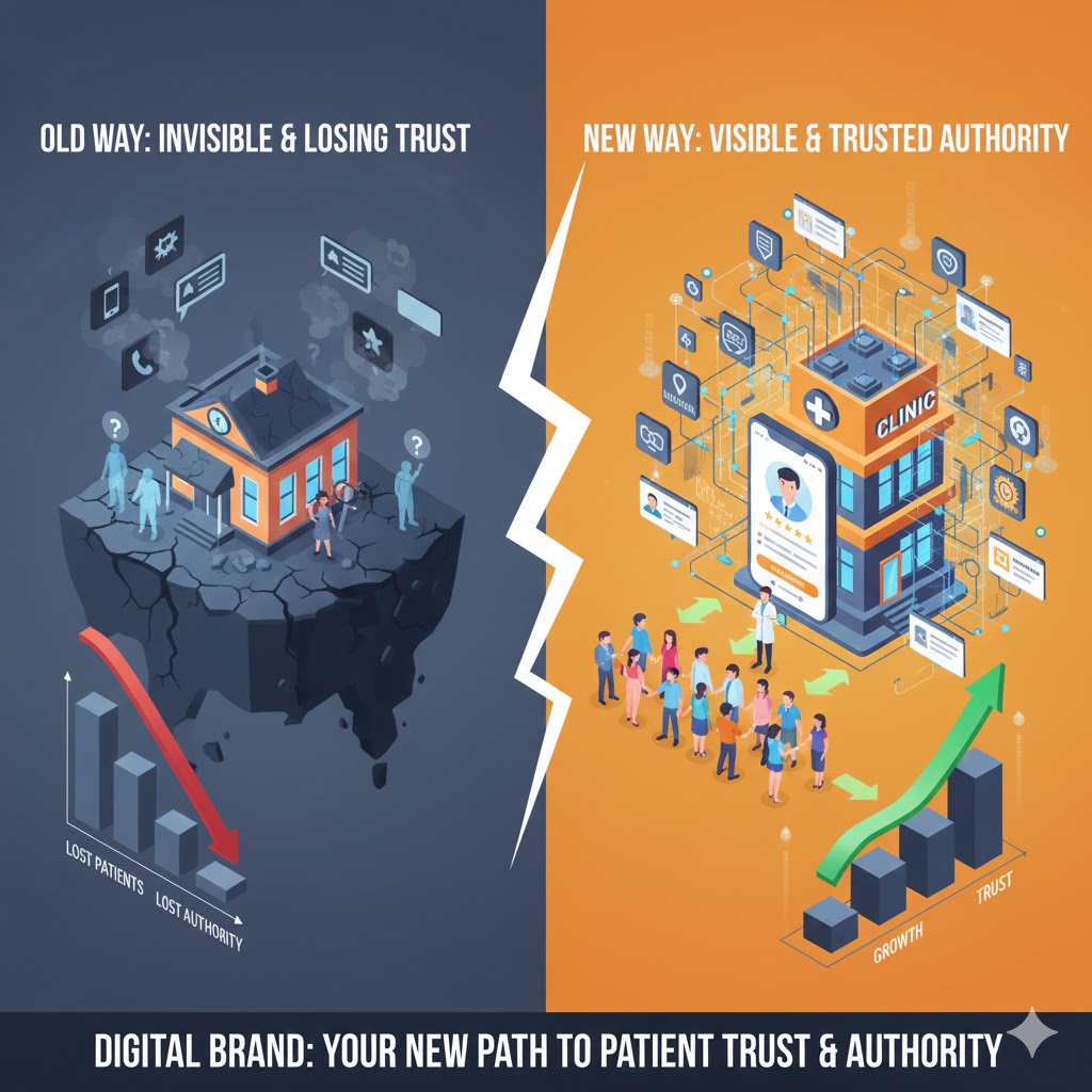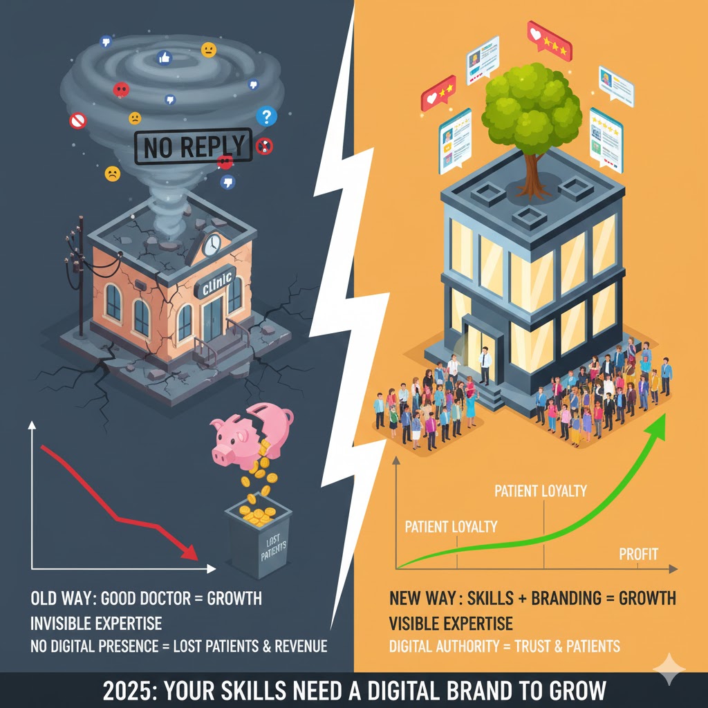 Why Being a “Good Doctor” Is Not Enough to Grow in 2025 The year 2025 has changed everything for doctors and clinics across India. Your medical degree was once enough to build a successful practice. Those days are now history. The Indian digital health market reached Rs. 75,658 crore in 2024. This number shows how patients now think about healthcare. They search online before visiting doctors. They read reviews before booking appointments. 75% of people look online to find a doctor. Your skills in surgery or diagnosis mean nothing to them. Patients judge you by what they see on their phone screens first. 80% of patients read online reviews before choosing a physician. They want to see what other patients say about you. Your reputation was built through word of mouth before. Now it gets built through Google reviews and social media posts. Most doctors between 31 and 55 years old face this problem today. You spent years learning medicine. You never learned how to market yourself online. This gap hurts your practice growth every single day. 75% of patients only consider doctors with four star ratings or higher. Good medical care alone cannot guarantee these ratings anymore. You need to be active to manage your online presence. Referrals from other doctors still matter. But they only bring limited new patients now. 46% of all Google searches happen locally. Patients search for “best cardiologist near me” or “pediatrician in my area.” Your clinic location was your biggest advantage before. Now patients travel across the city to visit doctors with a strong online presence. They trust online reviews more than physical proximity. 1. Patients Don’t Just Look for “Good Doctors” Anymore Today your patients are not just looking for good doctors anymore. The healthcare world has completely changed in India. In 2025, patients today expect accessible information and trustworthy content before they visit. Patients are doing homework before they book appointments these days. Think about how people buy a phone or book a hotel. They read reviews first. They check websites and compare options. The same thing happens when patients choose doctors now. Your competition is not just the clinic next door anymore. Patients are comparing you with doctors across the city. They look at websites, read patient stories, and check social media pages. The clinic with better online presence often wins the patient. Healthcare players have increased their marketing budgets by up to 7% of their annual revenue in 2025. Smart doctors are investing in their online image because they know patients are looking there first. When patients cannot find you online easily, they assume you might be outdated. Your years of experience become invisible if your online presence is weak. Good doctors without good online presence are losing patients every day. The Indian digital health market was valued at Rs 75,658 crore in 2024. This huge growth shows how patients search for doctors today. Your skills matter but being found online matters even more. Online health information seeking behavior is becoming increasingly common across all age groups. Patients search Google first before they call your clinic. About four in five individuals who had health problems sought treatments from formal healthcare. With three in five preferring private institutions due to perceived higher level of treatment quality. This data shows patients actively choose where to go based on what they find online. People have many options available to them now. Every patient checks many sources before they visit any clinic. Almost three out of four patients look at online reviews when searching for physicians. Your patients start their doctor search on Google first. They read reviews on Practo and other platforms. They check your website and social media pages too. Being a skilled doctor is important but not enough anymore. If patients cannot find you online easily, they will choose someone else. The new patient journey starts with a Google search. It moves to your website, then social media, and finally ends with a phone call. Being skilled is just the starting point now. Being found and trusted online decides whether patients choose you. This change is happening fast in India’s healthcare market. Doctors who adapt early are getting more patients. Those who rely only on word of mouth are falling behind. The numbers tell the real story here. Digital health users in India will increase by 103.7 million by 2029. More patients are going online to find their doctors. Your competition is getting smarter about this trend. Doctors with good online presence are getting more patients. They show up first in Google searches. Patients want to see proof before they trust you. They look for patient reviews and success stories. They want to know about your team and experience. Over 50 million Indians used teleconsultation services during the pandemic. This changed how people think about choosing doctors forever. Your technical skills bring results to patients. But your online image brings patients to your clinic. Both are needed for growth in 2025. Smart doctors understand this new patient behavior. They invest time in building their online reputation. They make sure patients can find them easily. The old days of word of mouth only are gone. Today patients research everything online before making health decisions. Your online presence is your new business card. 2. Trust Is Built Before Patients Walk In Your clinic door is no longer the first place patients meet you. The clinic’s reputation starts online now, not in the waiting room. Almost 75% of patients turn to online reviews as the first step when searching for a new physician. The internet becomes your reception desk now. Today’s patients research doctors before they make appointments. They spend time reading reviews and checking websites first. A recent study shows 77% of patients use online reviews before cho