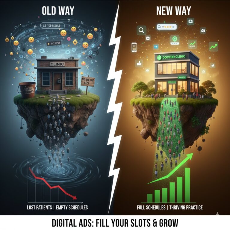 This happens hundreds of times every month in every city across India. Patients search. Doctors who advertise online get found. Doctors who do not advertise stay invisible. The invisible clinic loses patients to the visible one. Even if the invisible doctor has more experience and better skills.