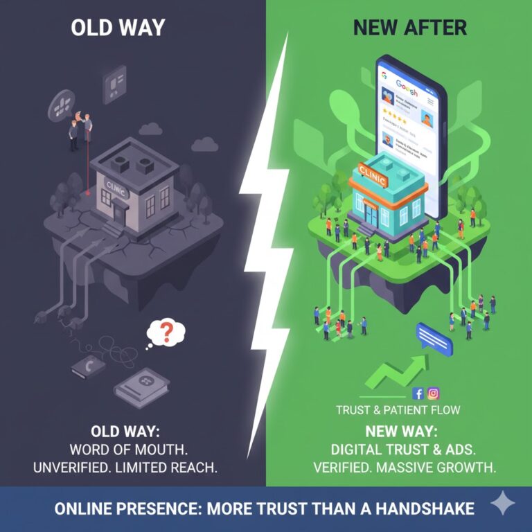 Today, a friend might say “Try Dr. Sharma, he is good.” The person nods and says thank you. Then they go home and search for Dr. Sharma online. If his website looks old or does not exist, they search for other options. If his Google reviews are few or negative, they book with someone else. The friend’s recommendation started the process, but online presence closed the deal.