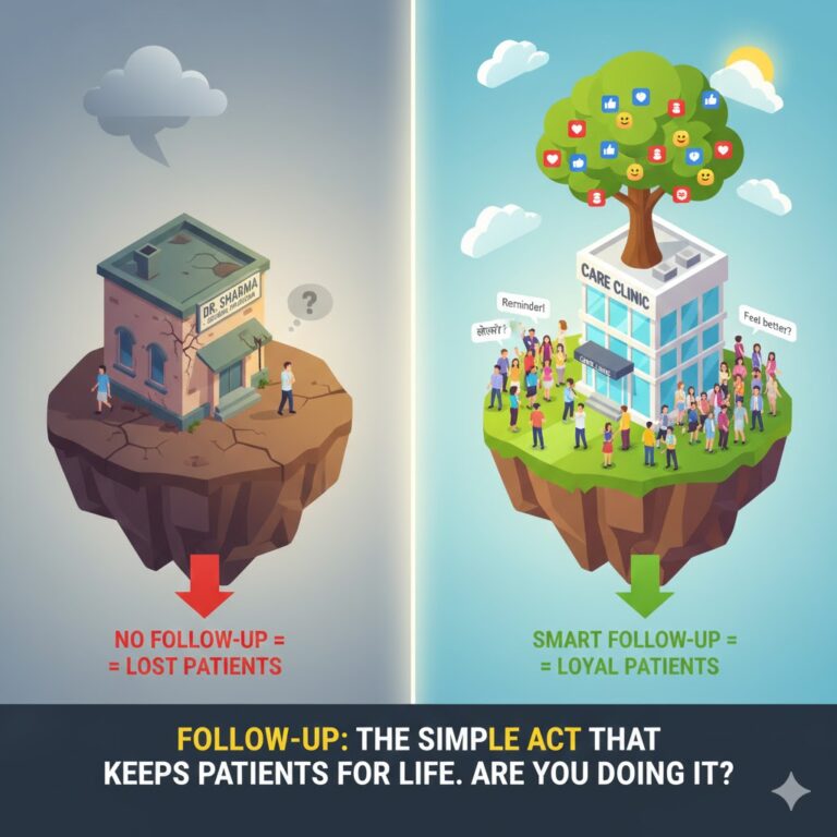 The doctors who succeed in India are not the ones with the most money. They are the ones who do something every single day. The ones who post two lines about health every day. The ones who reply to every call and message in one hour. The ones who ask happy patients to spread the word.