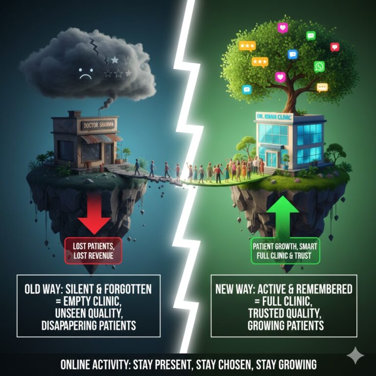 A patient will spend time online before they even call you. They will check your Google page. They will look at your WhatsApp status. They will see what you post on social media. If you are not there, they think you are not modern. If you are not there, they go to another doctor. Your Indian patients think this way too. They are not different from patients in other countries anymore.