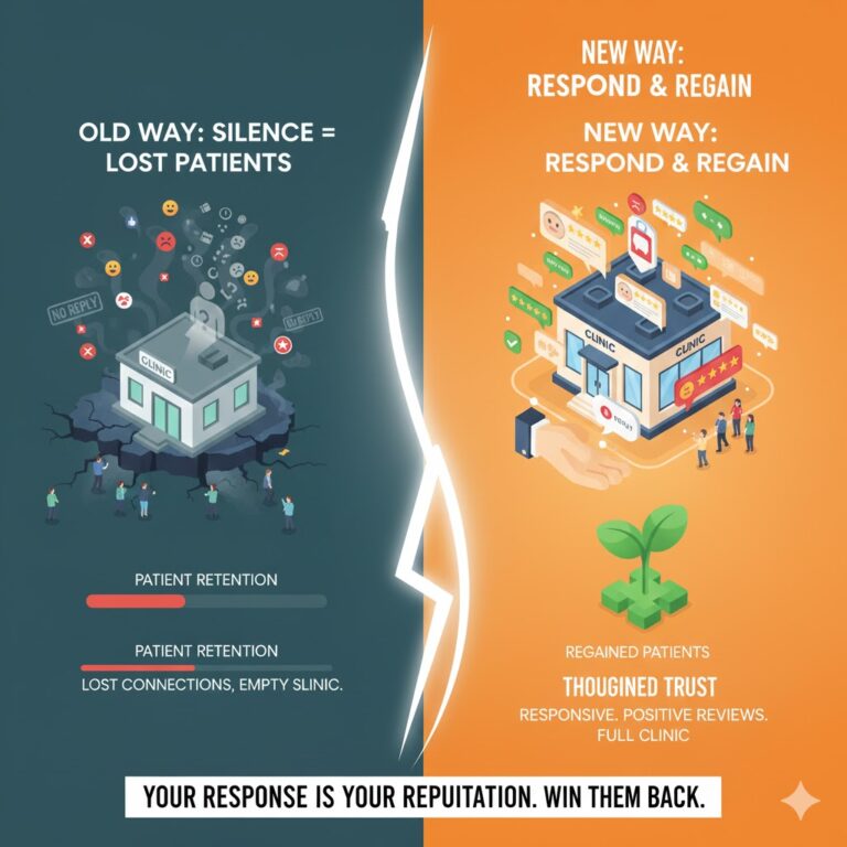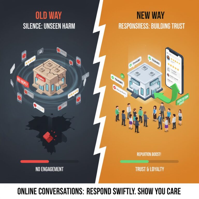 The same thing happens when you ignore reviews and comments online. New patients read what others say about your clinic every single day. They look at the good reviews and the complaints too. But they look at one more thing very carefully. They check if you responded or stayed completely silent.