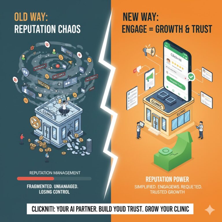 Let us help you turn patient feedback into your biggest strength. Contact Clickniti today and start building the trusted reputation your clinic needs. Your future patients are reading reviews right now. Make sure they see a clinic that listens and cares and responds.