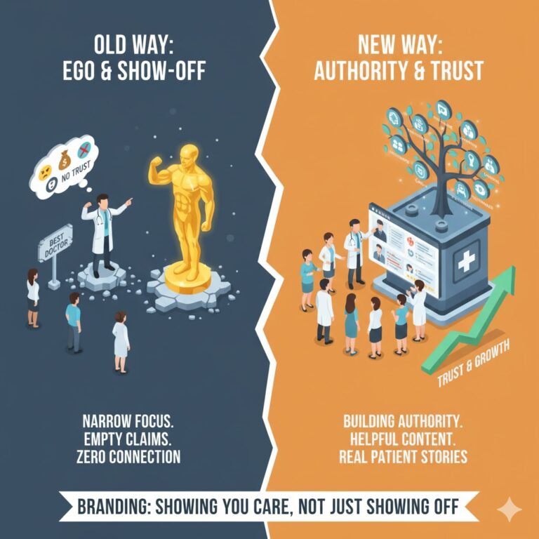 Authority = Trust. When patients see you as a thought leader (through articles, videos, podcasts, or even clear explanations on your website), they feel safer in your hands. Authority makes you the go-to doctor, not just another option.